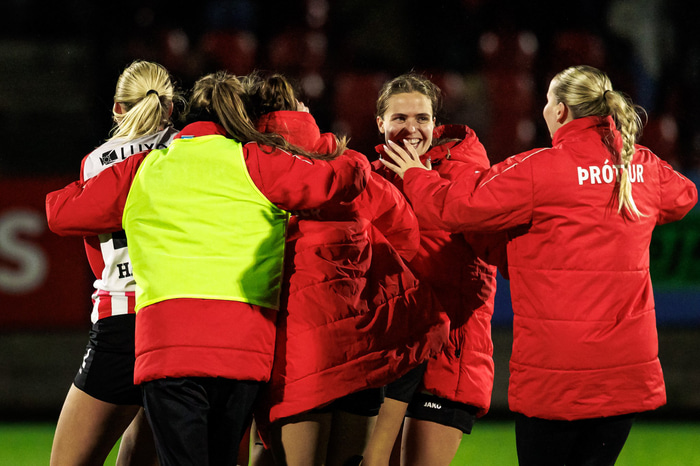 Fimm mörk komu í fyrri hálfleiknum og Unnur Dóra skoraði síðan eina markið í seinni og sitt annað mark í leiknum.