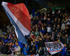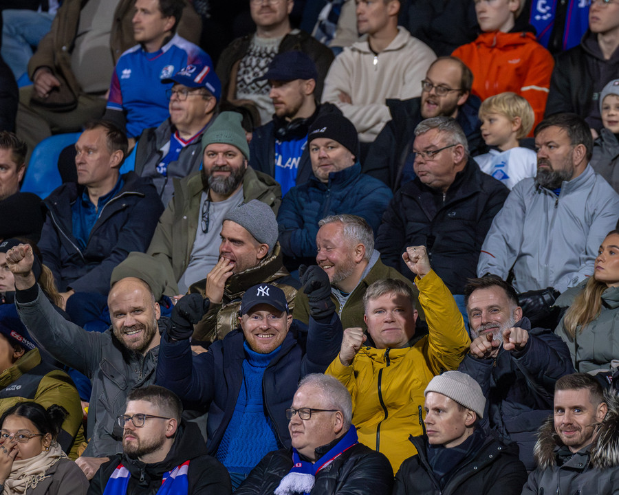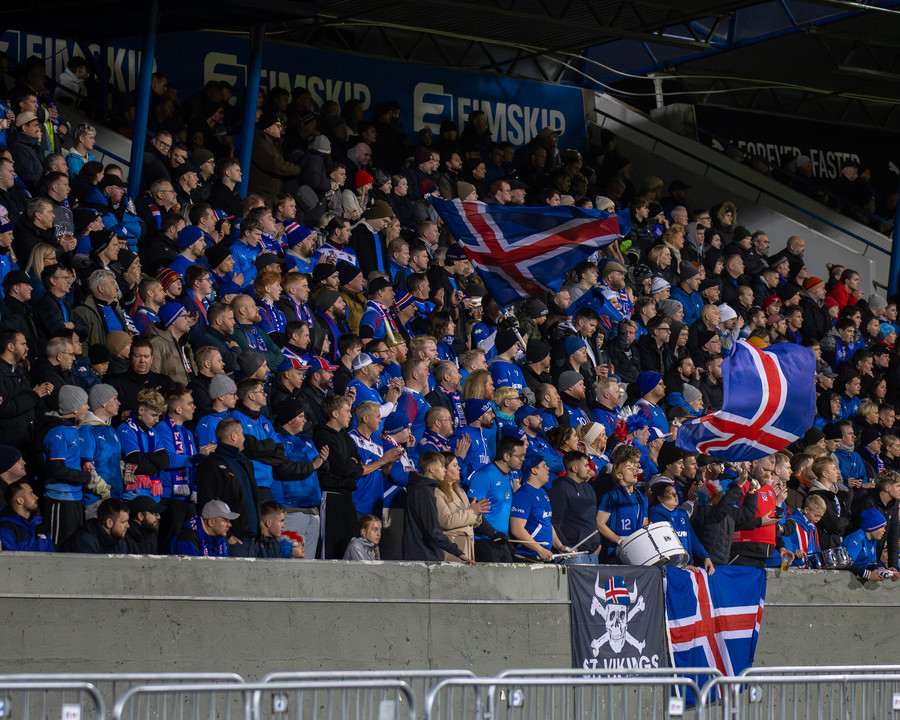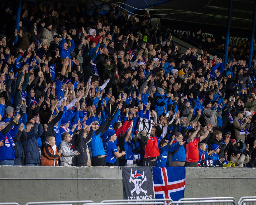 Uppsker baul frá stuðningsmönnum Íslands við innkomuna.