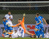 Frakkar fá aukaspyrnu við miðlínu og Digne tekur eftir því að Elías stendur frekar framarlega. Hann reynir þá skotið, en þessi framhjá markinu.