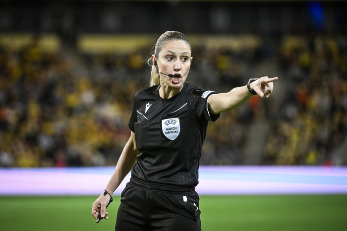 Eleni Antoniou er með flautuna og henni til aðstoðar eru þær Vasilia Tsiklitari og Zoi Papadopoulou.