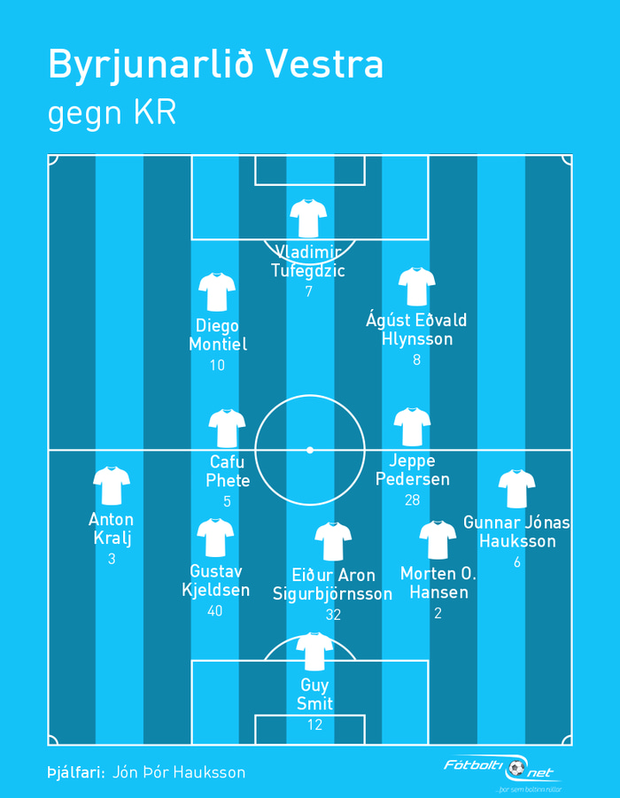 Jón Þór Hauksson, þjálfari Vestra, gerir þrjár breytingar á sínu liði frá jafnteflinu gegn Aftureldingu um síðustu helgi. Morten Hansen kemur inn og tekur við fyrirliðabandinu af Elmari Atla Garðarssyni sem tekur sér sæti á bekknum. Cafu Phete og Gunnar Jónas Hauksson koma inn fyrir þá Guðmund Arnar Svavarsson og Johannes Selven sem eru á bekknum.