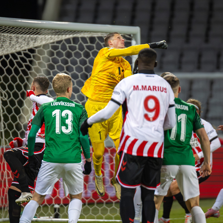 Horn sem Yavru tekur, fer á Marius sem á skot í stöng En Anton Ari gerir vel og handsamar þennan