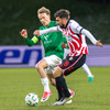 ÚFFFF Gabríel Snær með háan bolta yfir vörn Samsunspor á Kristófer en aðeins of fast og hann þarf að teygja sig