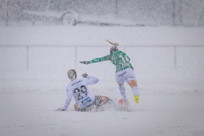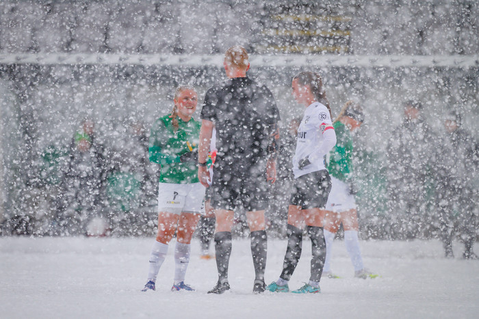 Leik Breiðabliks og FH í Meistarakeppni kvenna, sem hófst í gær, var frestað vegna mikillar snjókomu. Leikurinn hófst fimmtán mínútum á eftir áætlun og þegar reynt hafði verið að spila í átta mínútur var leikurinn blásinn af.