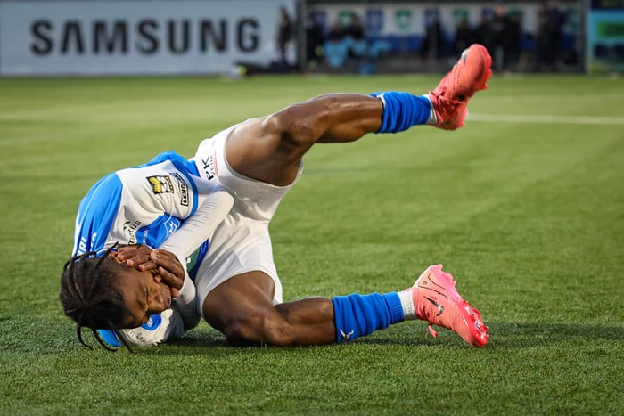 Stjarnan með aukaspyrnu sem Ísak Óli ætlar að reyna skalla frá á sama tíma og Jökull ætlar að lemja boltann frá. Þeir skella þá saman og Jökull þarf aðhlynningu eftir það.