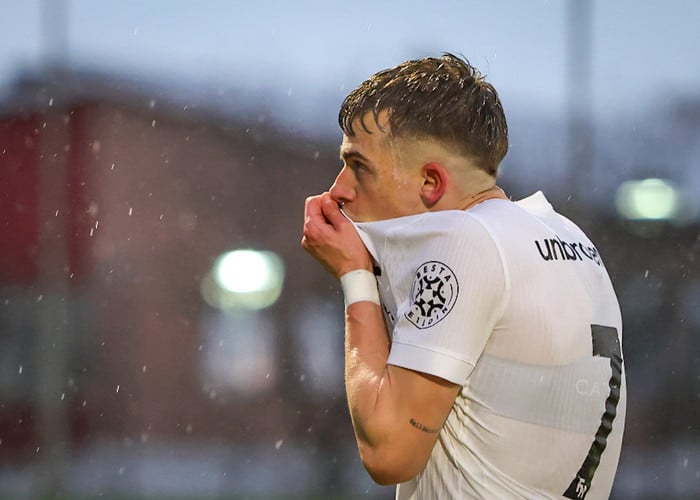 Laus bolti á hægri kantinum og Gils er ekkert eðlilega fljótur. Hann stingur menn af og nær að koma boltanum fyrir en það er enginn inn í teig. Baldur Kári nær svo boltanum á jarðri teigsins og tekur skotið en framhká.