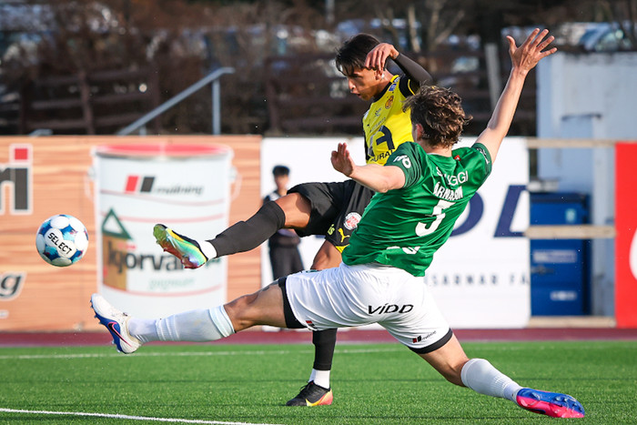 Óli Valur með glæsilegan sprett, kominn í góða stöðu en tekur afleitt skot sem fer hátt yfir mark gestanna.