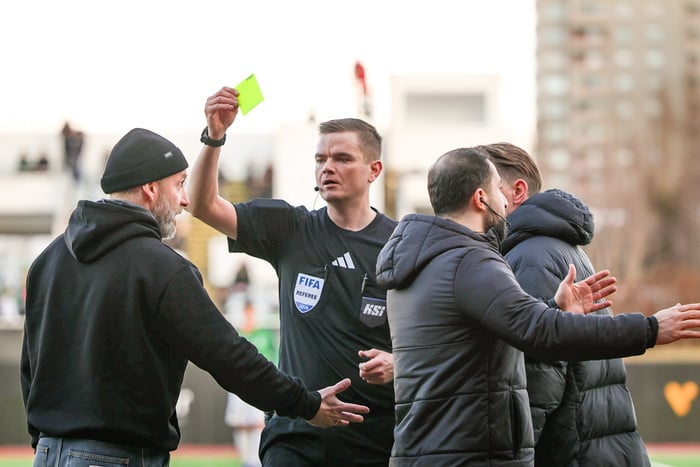 Nýbúinn að fá gult spjald og brýtur af sér á miðjum velli. Blikar kalla eftir rauða spjaldinu en hann sleppur með tiltal. Að mínu mati rétt að hlífa Markúsi.