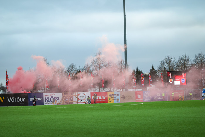 Aðstæður: Skýjað, sjö gráður og full stúka