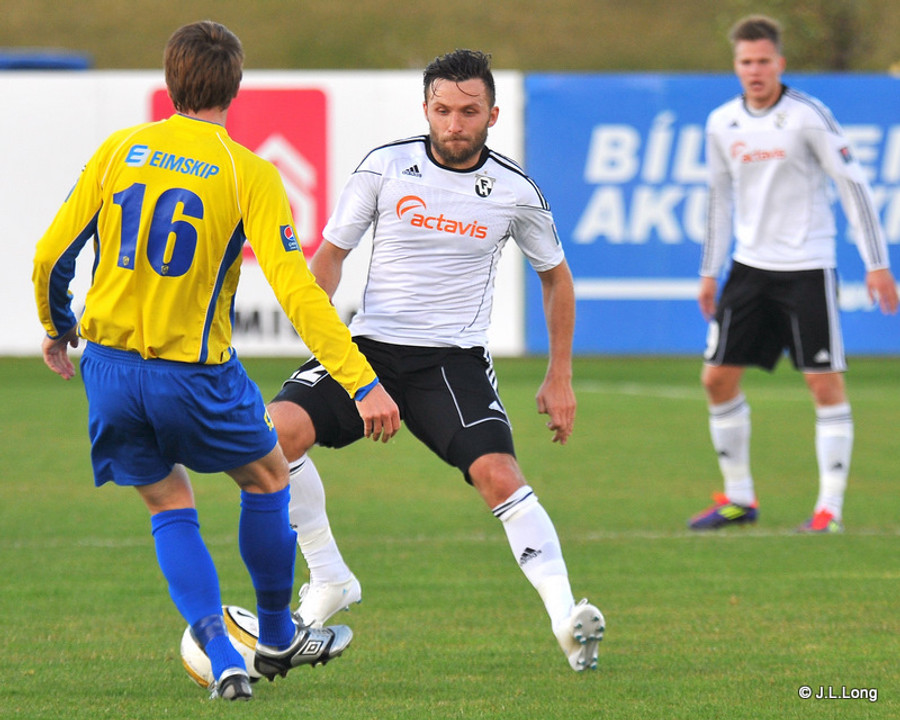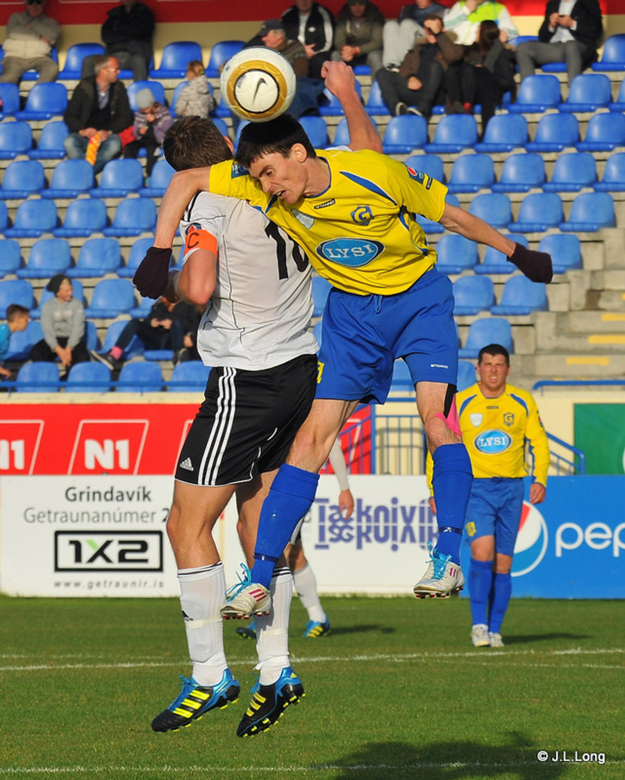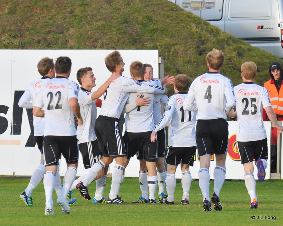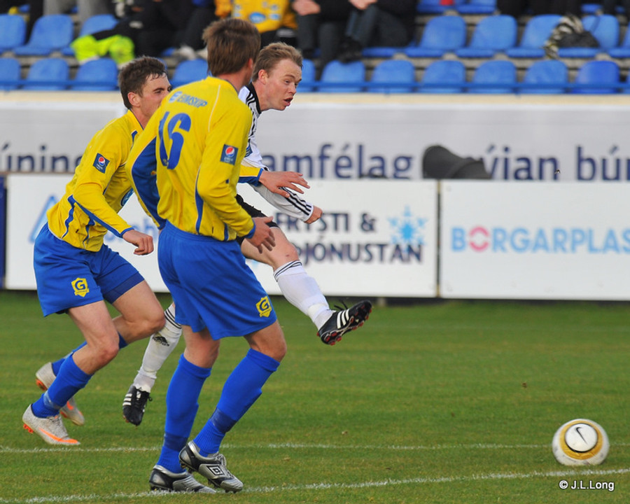 Eftir hornspyrnu Ólafs Páls náði Freyr Bjarnason sem var á fjær stönginni að skalla í stöng og inn.