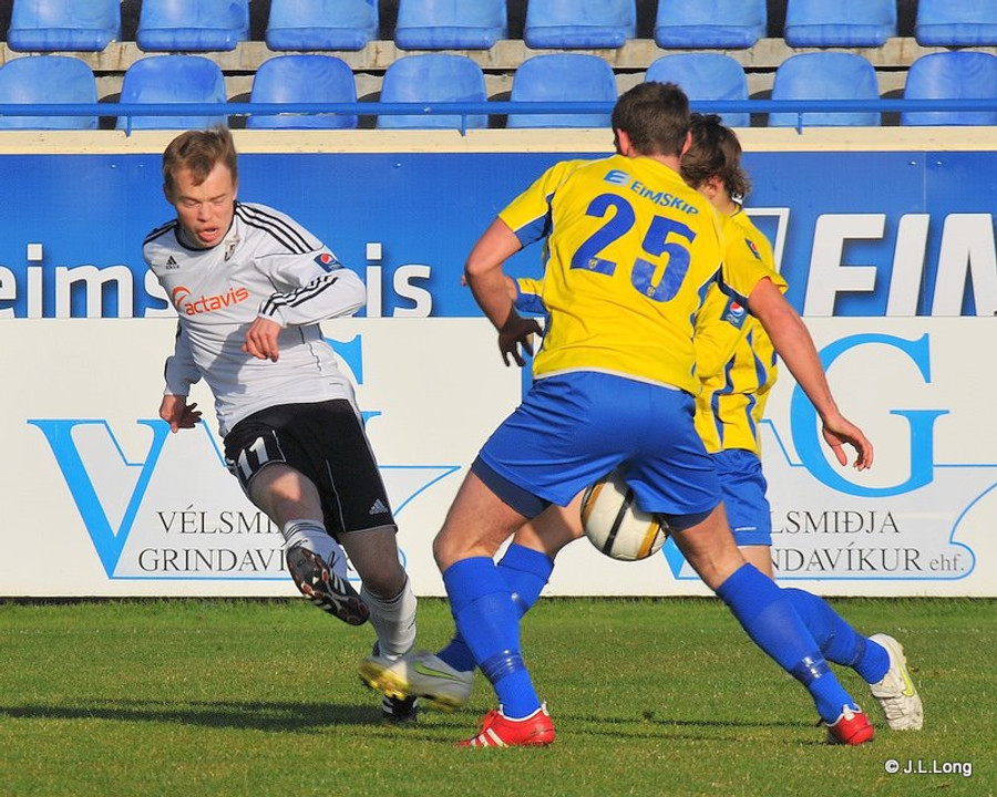 Grindvíikingar eru ósáttir við Eðvarð Eðvarðsson línuvörð sem í tvígang hefur dæmt Magnús Björgvinsson framherja þeirra rangstæðan. Líklega eru dómarnir samt réttir.