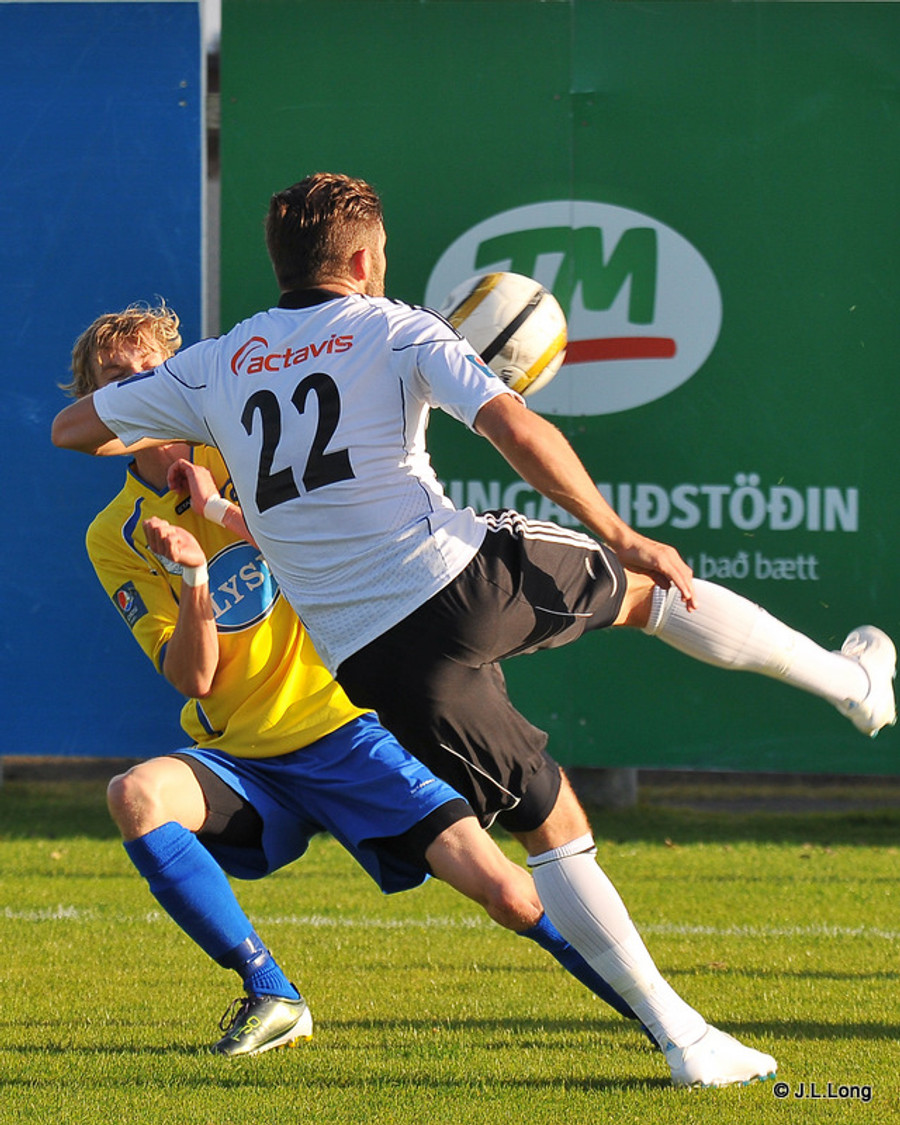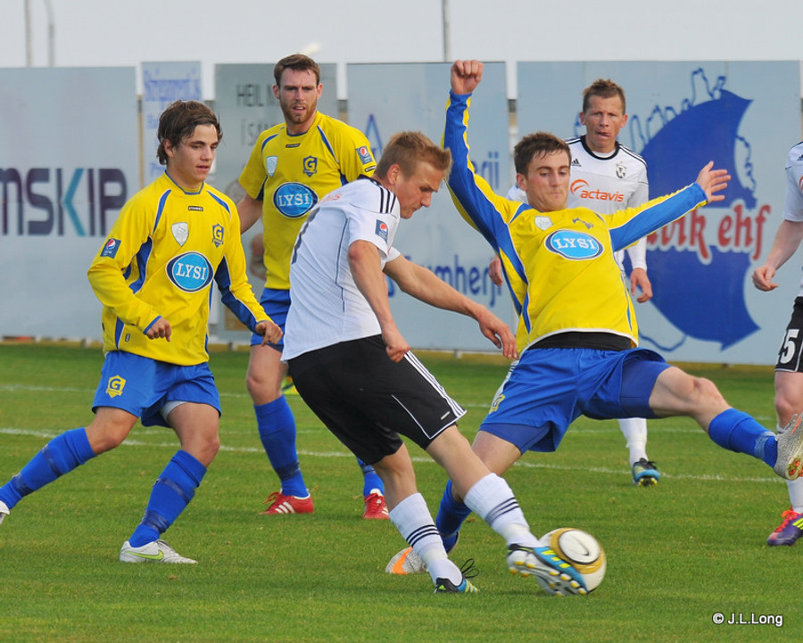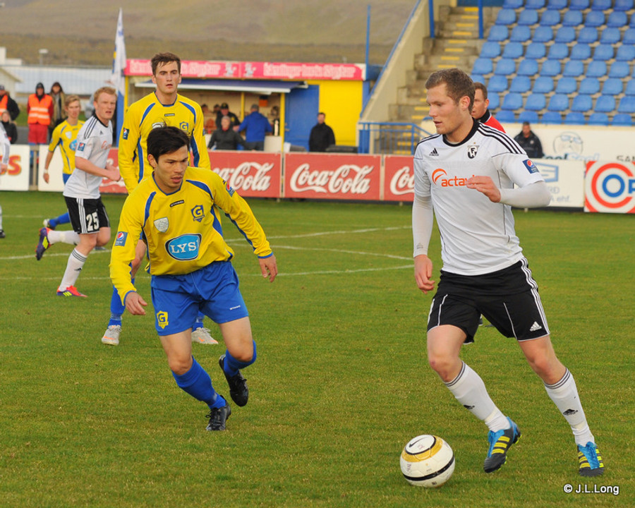 Magnús Björgvinsson minnkar muninn með góðu skoti fyrir utan vítateig.
