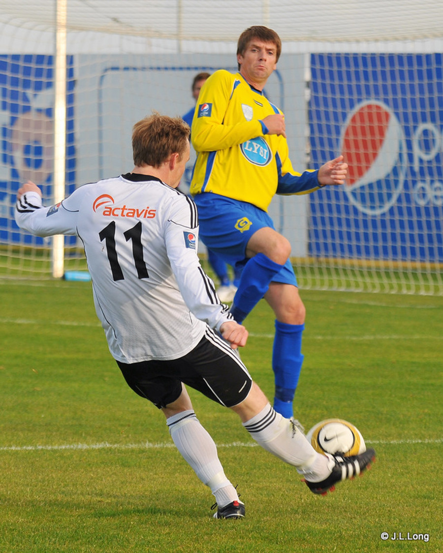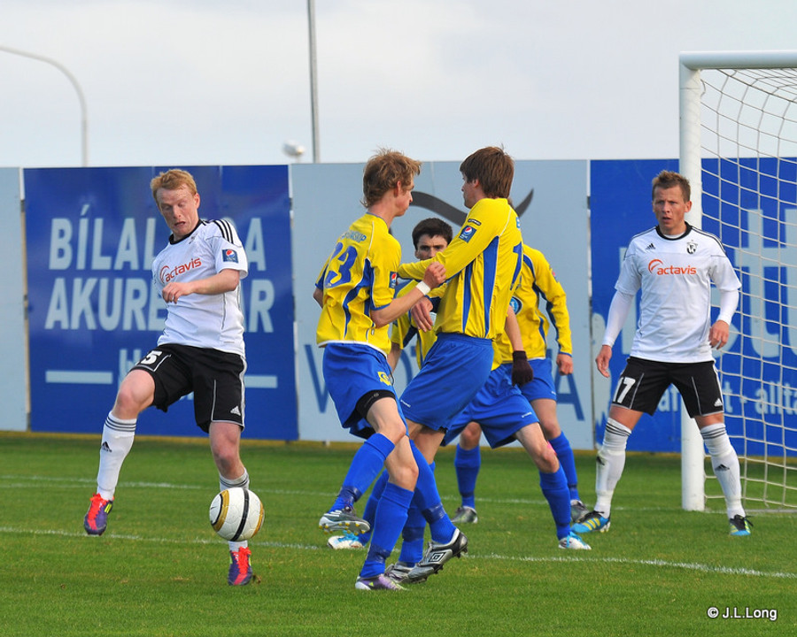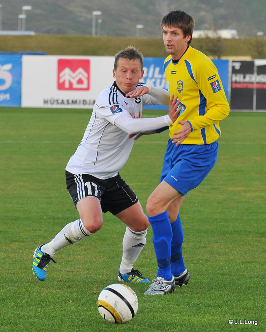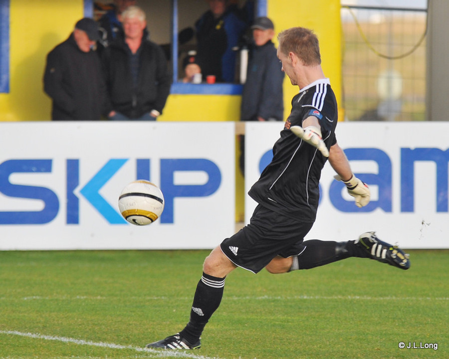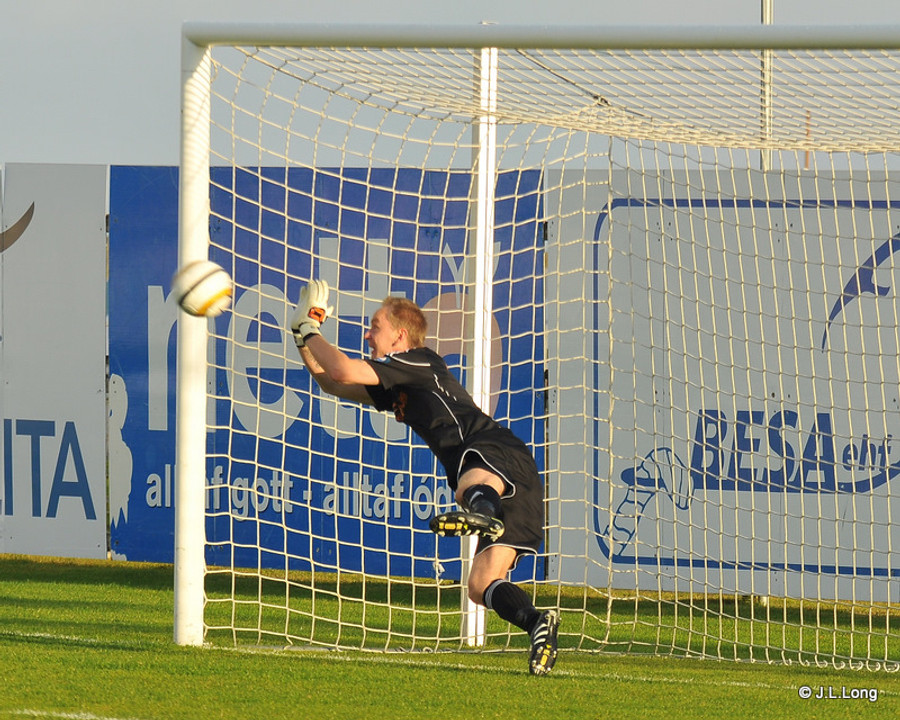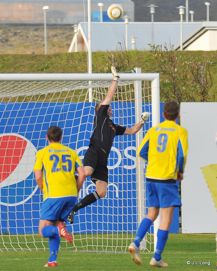 Gunnleifur varði frábæra aukaspyrnu Scott Ramsay á frábæran hátt og kom boltanum aftur fyrir endamörk og í horn. Úr horninu varð ekkert.