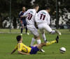 Jordan A Branco hefur gerst sekur um glæp... ójá! Hann er í svörtum undirbuxum og fær skammir fyrir frá dómara leiksins. Hann er þó einnig í hvítum þannig að hann tosar þær bara lengra niður, þarna skall hurð nærri hælum.