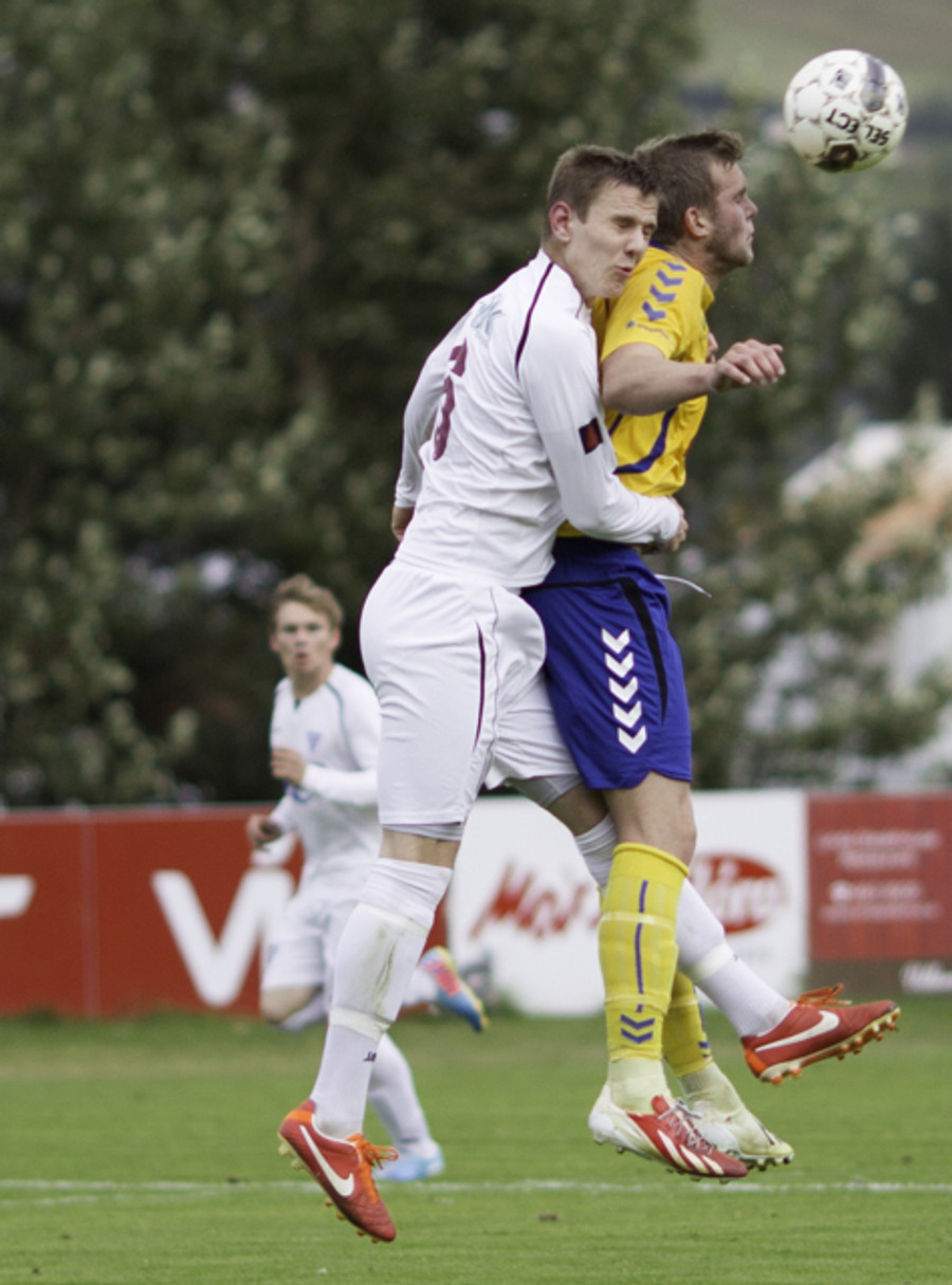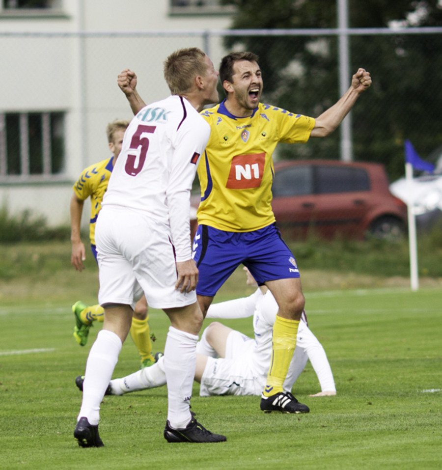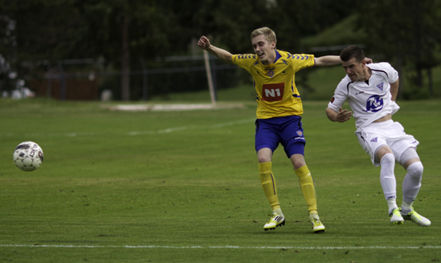 Hættu nú alveg og það tvisvar! Árni Arnarson á tvö skot að marki eftir að Sandor lendir í vandræðum í úthlaupi en Árni kemur boltanum bara ekki framhjá Ivan Dragicevic sem ver frá honum á línu í bæði skiptin... þessi átti að enda í netinu!