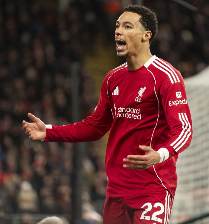 Hann vildi fá dæmda vítaspyrnu og rautt spjald í fyrri hálfleik eftir samskipti Jaka Bijol við Hugo Ekitike en ekkert var dæmt. Slot segir að það komi sér ekkert á óvart, svona sé þetta búið að vera allt tímabilið.