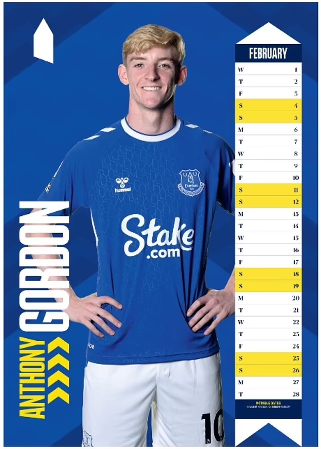Stuðningsmenn Everton vöknuðu svo upp við vondan draum í morgun þegar febrúar gekk í garð. Fyrirsæta febrúarmánaðar á dagatali félagsins er nefnilega Anthony Gordon.