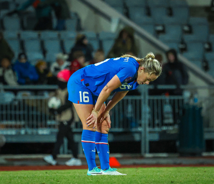 Hún þurfti aðhlynningu á vellinum áður en henni var skipt af velli en Ásdís Karen Halldórsdóttir var ekki með Madrid í dag.