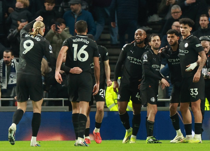 Tottenham tók á móti Manchester City í afar spennandi úrvalsdeildarslag í dag og voru gestirnir sterkari aðilinn í fyrri hálfleik.