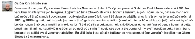 Garðar var varadómari í Evrópuleik hjá Newcastle á St. James' Park árið 2006 og sagði, í athugasemd við frétt Fótbolta.net í gær, skemmtilega frá samskiptunum við Roeder og bar honum vel söguna. Athugasemdina má lesa hér að neðan.