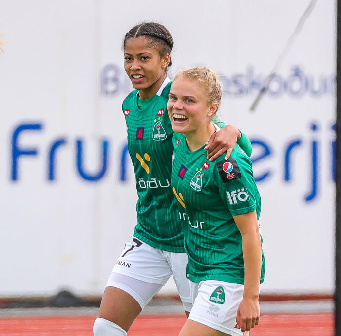 Tvær bestu leikmenn Íslandsmótsins í fyrra; Sveindís og Agla María Albertsdóttir.