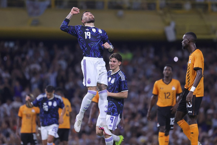 Julian Alvarez, Lionel Messi og Valentin Barco voru á skotskónum í stórsigri Argentínu gegn Sambíu. Leikurinn var síðasti heimaleikur Otamendi með landsliðinu og leyfði Messi honum að taka vítaspyrnu á 50. mínútu leiksins. Otamendi, sem er 38 ára, skoraði sitt sjöunda landsliðsmark úr spyrnunni.