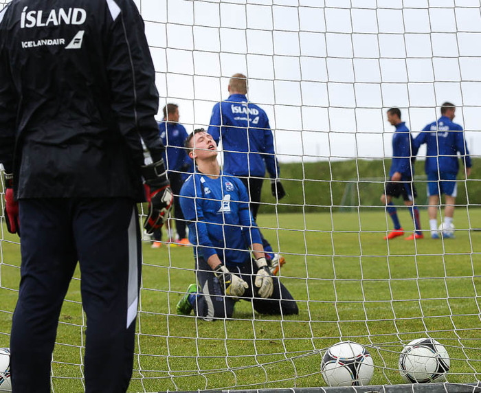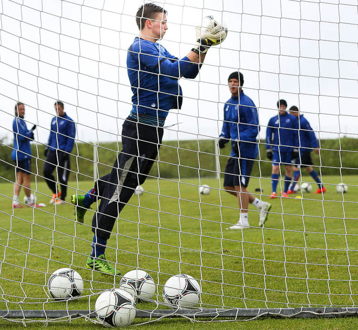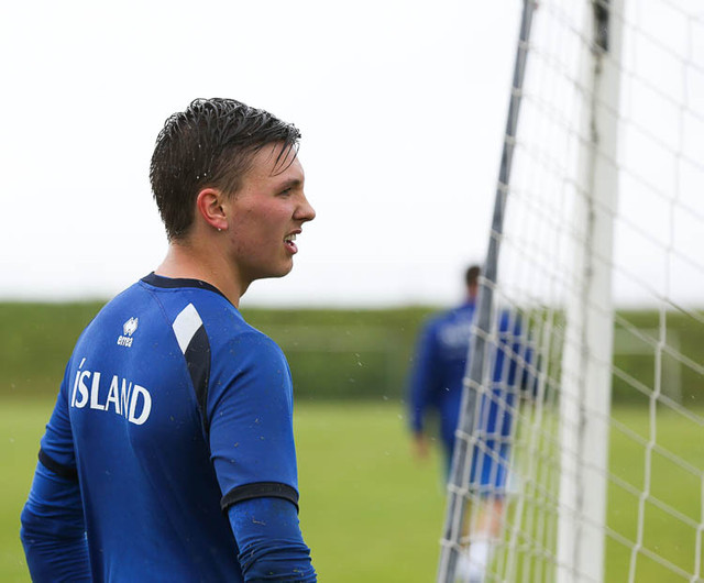 Sindri Kristinn Ólafsson, 17 ára gamall markvörður Keflavíkur æfði með íslenska landsliðinu í Garðinum í morgun en liðið undirbýr sig fyrir leikinn gegn Eistlandi á Laugardalsvelli á miðvikudaginn.