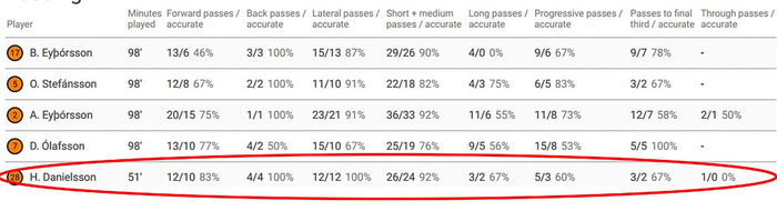Allar upplýsingarnar eru fengnar úr Wyscout kerfinu og er Andrea Giotto Panepinto sérstaklega þakkað fyrir aðgang að kerfinu.