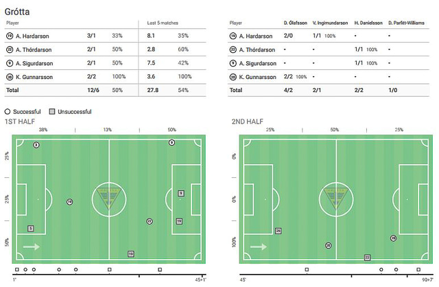 Gróttuliðið skorti flæði í spilið til að koma Axel-onum tveimur meira inn í leikinn. Því báðir eru þeir með gott knattrak og óvæntar stefnubreytingar. Uppspilið gekk ekki vel og átti Helgi Valur (26) svipað margar heppnaðar sendingar og bæði Óliver Dagur (18) og Sigurvin (12) til samans á þeim 50 mín sem hann spilaði.