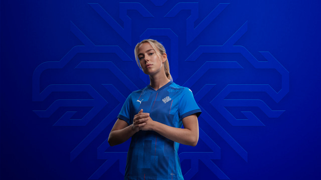 Í dag kynnti KSÍ nýja landsliðstreyju og einnig nýtt merki landsliðsins. Í landsliðsmerkinu má sjá landvættina en merkið verður á öllum treyjum og æfingafatnaði Íslands.