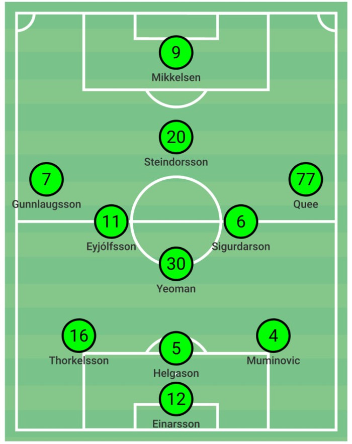 Í hálfleik breyttu Skagamenn aftur um kerfi í stöðunni 4-1 og færðu sig aftur í 4-3-3 en færðu Lars upp á miðjuna í stað Hlyns. Þeim gekk betur þá að keppa við Blikana.
