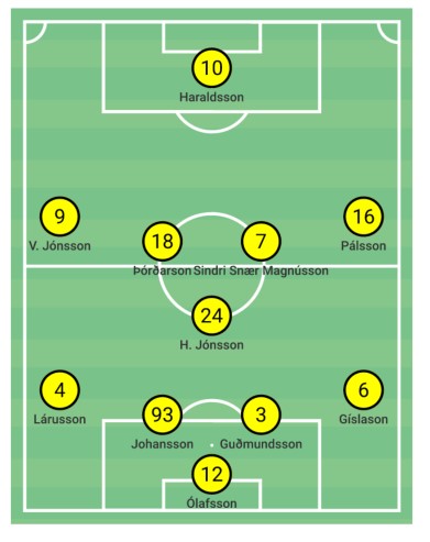 Aron setur boltann í hornið, Damir er illa staðsettur. Gerir sennilega ráð fyrir því að boltinn komi stutt og hann þurfi að styðja við Kwame. Viktor er markmeginn við Damir og boltinn kemur í hornið.