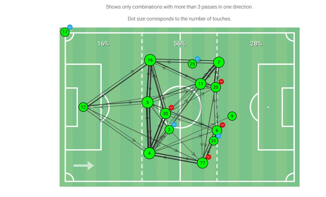 Eins og sjá má héldu Blikarnir veislu sóknarlega úti vinstra megin frá sér séð. Höskuldur og Gísli ná einstaklega vel saman í spilinu. Þeir þurfa ekki mikið pláss til vinna með. Það er sérstaklega gaman að fylgjast með Gísla í því að veiða menn inn og spila síðan framhjá þeim og fara á blindu hlið þeirra. Tæknileg gæði þurfa vissulega að vera til staðar en það sem mikilvægara er að tilfinningin fyrir tímasetningum þarf að ákaflega góð. Að hægja niður, veiða andstæðinginn inn og síðan sprengja upp. Ekki margir leikmenn í Pepsi Max-deildinni með þessa eiginleika.