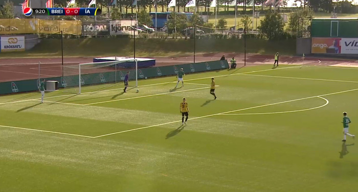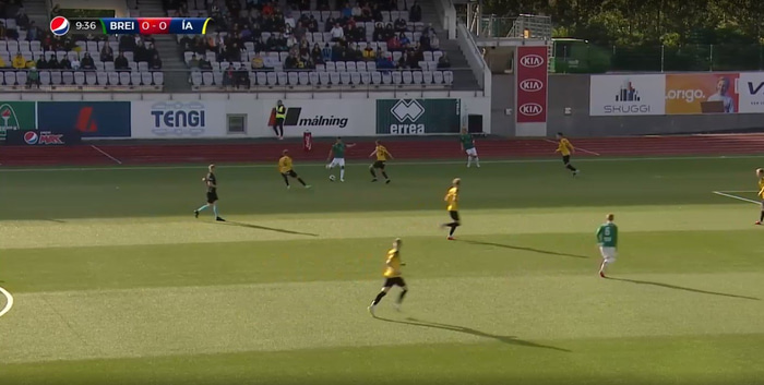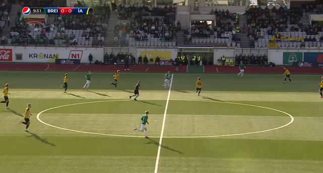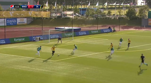 Í upphafi leiks byrjuðu Skagamenn nokkuð frísklega og þeir hefðu getað nýtt stöðu í leiknum betur og náð forskoti í leiknum sem hefði getað breytt leiknum mikið. Skagamenn höfðu boltann úti hægra megin og færðu hann yfir til vinstri. Vinstri bakvörðurinn fékk pressu á sig frá vængbakverðinum sem þýðir að mikið pláss er á bakvið vængbakvörð Blikanna. Aron Kristófer hefur nægan tíma.