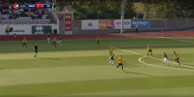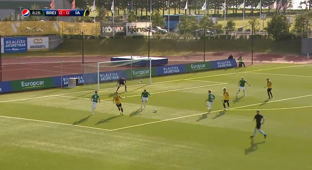 Alexander tekur góða ákvörðun og reynir að þræða boltann í fyrsta á Mikkelsen en það vantar örlítið uppá nákvæmnina/viðbragð Mikkelsen og boltinn endar hjá Árna í marki ÍA. En á 15 sekúndum frá því boltinn byrjaði í markteig ÍA eru Blikarnir komnir upp að vítateig ÍA án þess að hafa verið klukkaðir.