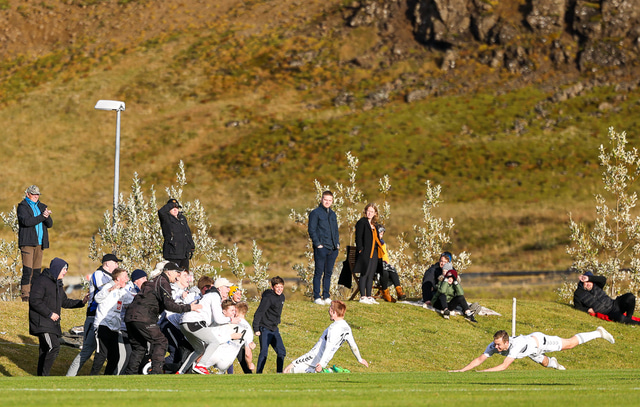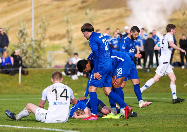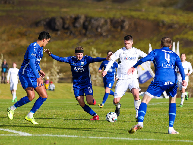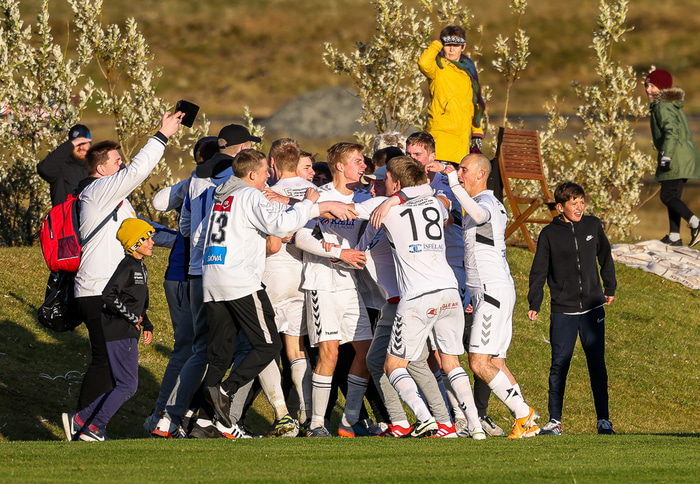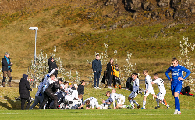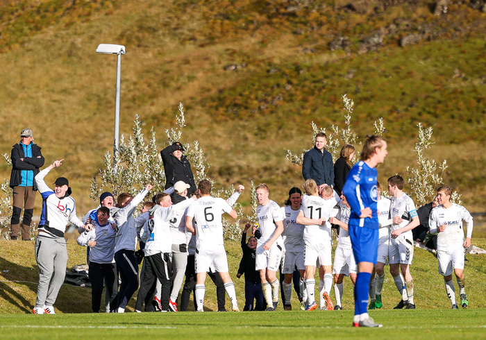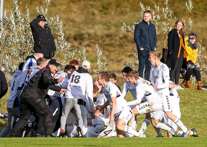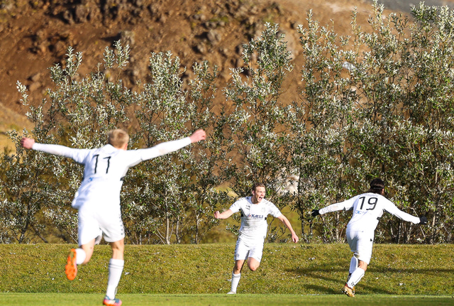 KFS er komið í 3. deild karla eftir að hafa unnið 0 - 1 sigur á Hamri í Hveragerði í gær en samanlögð úrslit urðu 2 - 0 sigur KFS í umspilinu. Hér að neðan er fjöldi mynda af Grýluvelli.