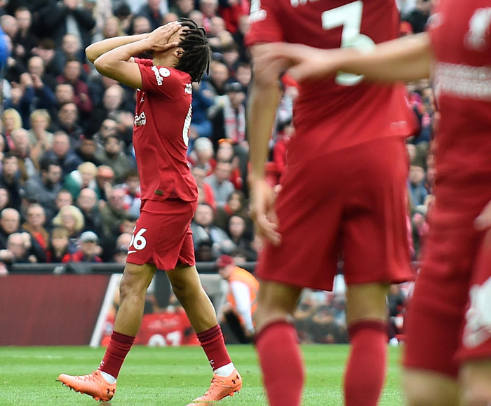 Alexander-Arnold, var eins og oft áður, í vandræðum varnarlega og sást það í í fyrstu tveimur mörkunum. Það voru vissulega óheppileg mistök í fyrra markinu en í því síðara varðist hann illa.