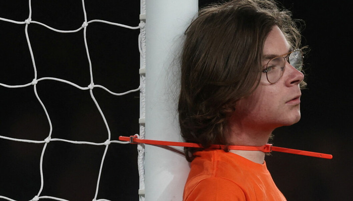 McKechnie notaði járnlás til að binda hálsinn á sér við markstöngina og stöðvaði þannig leikinn. Þetta gerði hann til að vekja athygli á styrktaraðilum Newcastle United, olíufyrirtækinu Saudi Aramco. McKechnie klæddist bol sem stendur á Just Stop Oil þegar hann lét stöðva leikinn á Goodison Park.