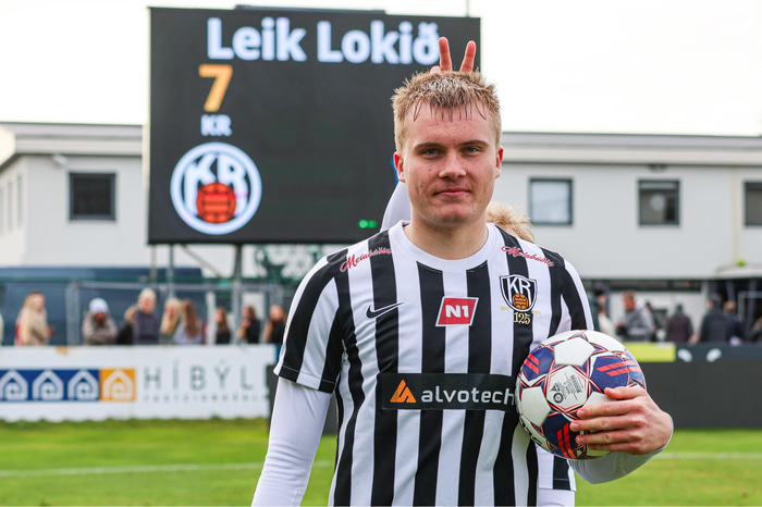 Benoný skoraði fjögur mörk þegar KR-ingar niðurlægðu Framara 7-1 og fékk að eiga boltann eftir leik. Þessi mikli markaskorari setur stefnuna auðvitað á gullskóinn þetta tímabilið.