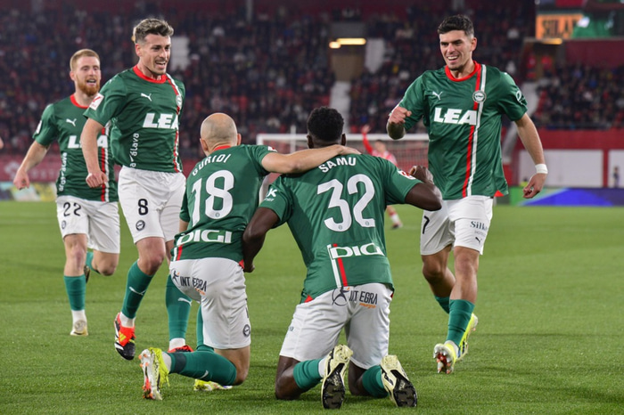Kike Garcia, leikmaður Alaves, var mögulega heppinn að fá aðeins gult spjald þegar hann steig á Antonio Raillo snemma leiks en Garcia spilaði ekki í síðustu tveimur leikjum þar sem hann var í banni.