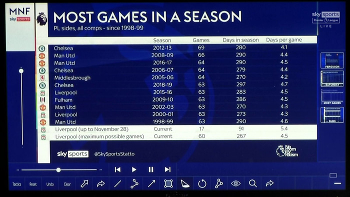 Hingað til hefur Liverpool spilað að meðaltali á 5,4 daga fresti, eitthvað sem er alls ekki óvanalegt hjá liðum sem spila í Evrópukeppnum.
