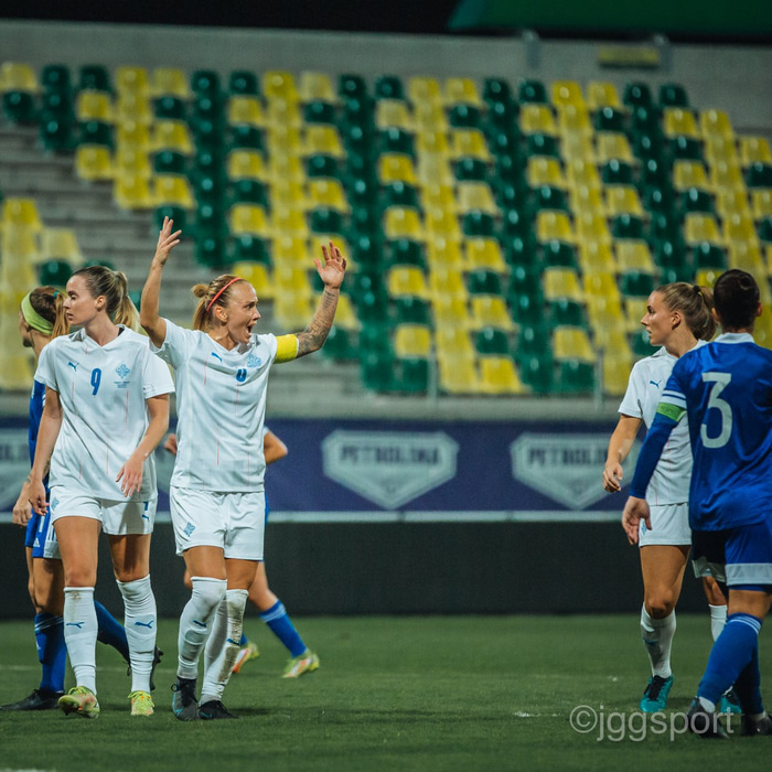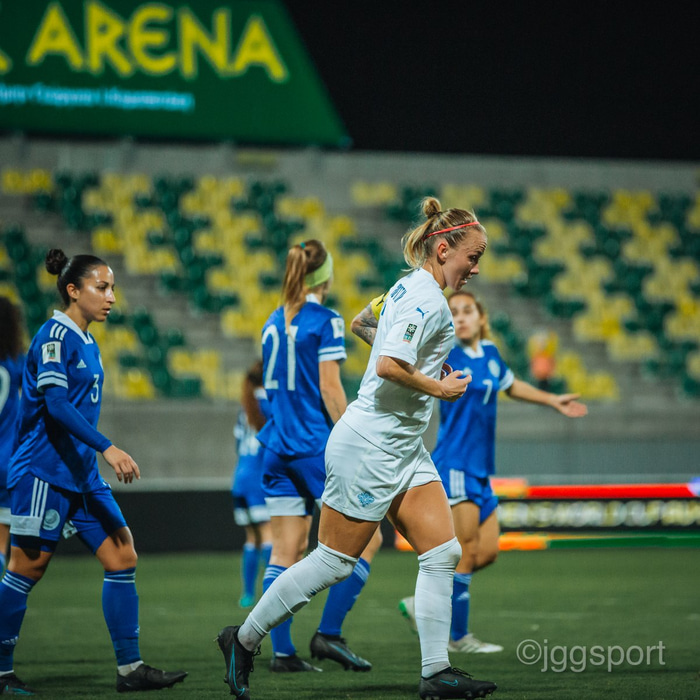 Ísland vann  0 - 4 sigur á Kýpur í undankeppni HM 2023 í gær en leikið var í Larcarna á Kýpur. Jónína Guðbjörg Guðbjartsdóttir var á leiknum og tók þessar myndir.