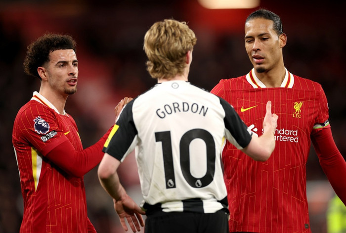 Seint í leik Newcastle gegn Brighton fékk Gordon rauða spjaldið fyrir að slá til Jan Paul van Hecke og var hann sendur um leið í sturtu.