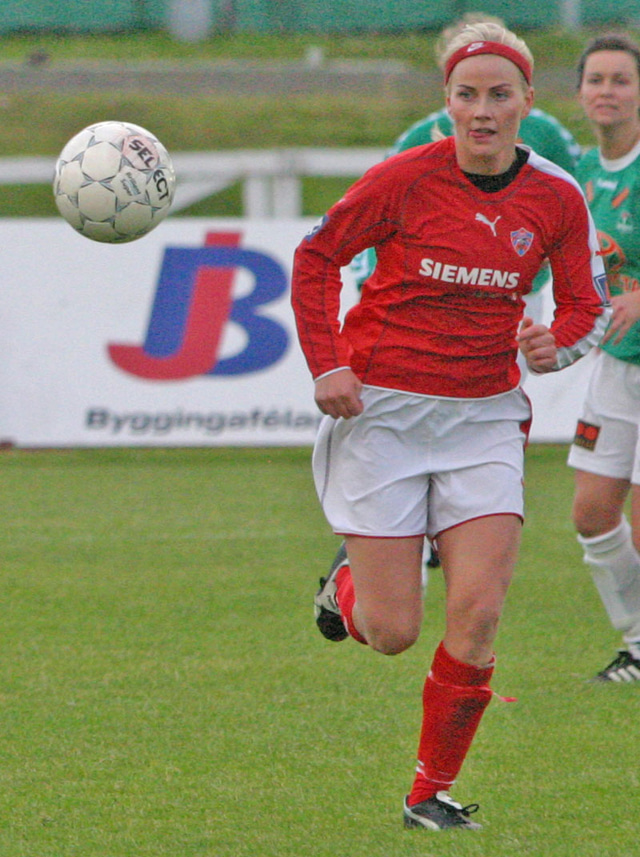 Olga Færseth. "Drottningin" eins og Margrét Lára kallar hana. Hjálpaði Margréti Láru mikið þegar hún var að stíga sín fyrstu skref með landsliðinu.