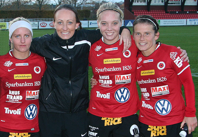 Guðný Björk Óðinsdóttir. Margrét Lára og Guðný (lengst til vinstri) léku saman bæði hjá Val og Kristianstad.