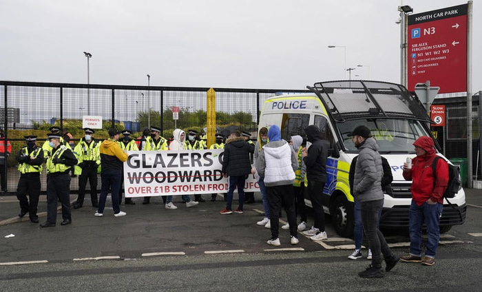 Fyrr í dag brutust stuðningsmenn Man Utd inn á Old Trafford og mótmæltu þar eigendum félagsins og græðgi þeirra.