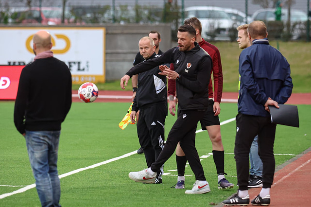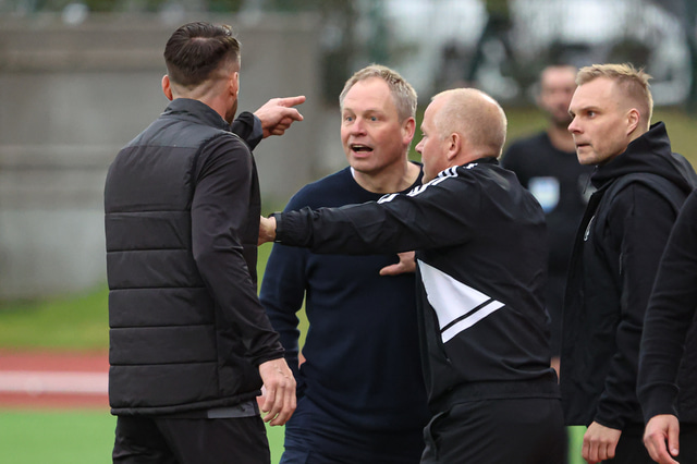 Óskar Hrafn Þorvaldsson, þjálfari Blika, fór þá í slag sem ekki margir færu í en hann fór haus í haus við Sölva Geir Ottesen, einn af þjálfurum Víkings.