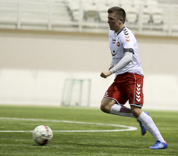 ,,Þetta var erfiðara en við bjuggumst við. Við settum bara tvö mörk í fyrri hálfleik og spiluðum svo frekar þétt þarna í seinni hálfleik og héldum þessu vel," sagði Leifur.