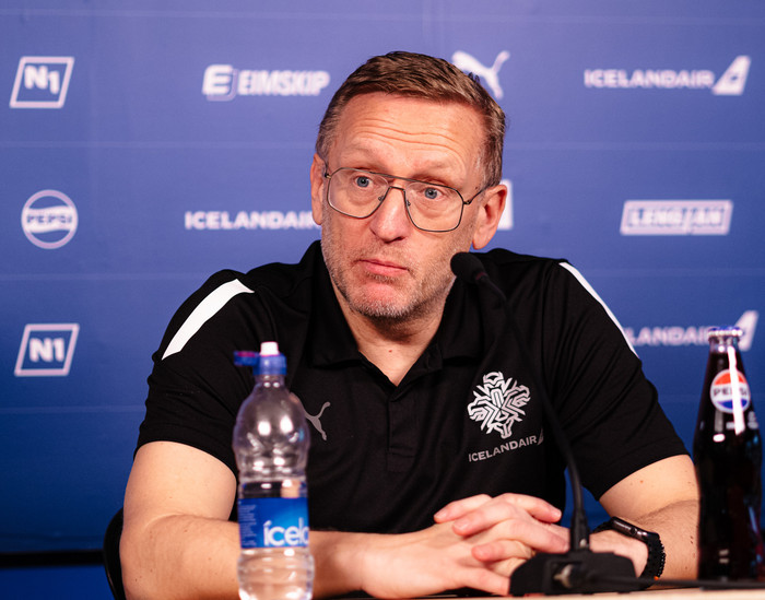 „Ef við horfum á stöður og annað, þá er ekki óeðlilegt að tala þannig. Við hræðumst það ekki. Við erum að fara í þennan leik til að vinna. Þannig munum við nálgast þennan leik, en við gerum okkur fulla grein fyrir því að finnska liðið er gott. Það er lið sem er mjög vinnusamt og við þurfum að vera mjög sterk í návígum. Það er mikil hlaupageta í finnska liðinu og við þurfum að vera á okkar besta degi til að vinna þær. Þetta er talsmáti sem þau nota en ég veit að þau leggja mikla áherslu á að vinna Ísland," sagði landsliðsþjálfarinn á fundinum.