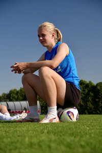 „Við reynum að passa upp á þetta, vorum skammaðar um daginn fyrir að tala of mikla íslensku," sagði Katla. Hún segir að það hafi verið ómetanlegt skref fyrir sig að fara til Kristianstad og um fyrirliðahlutverkið sagði hún: